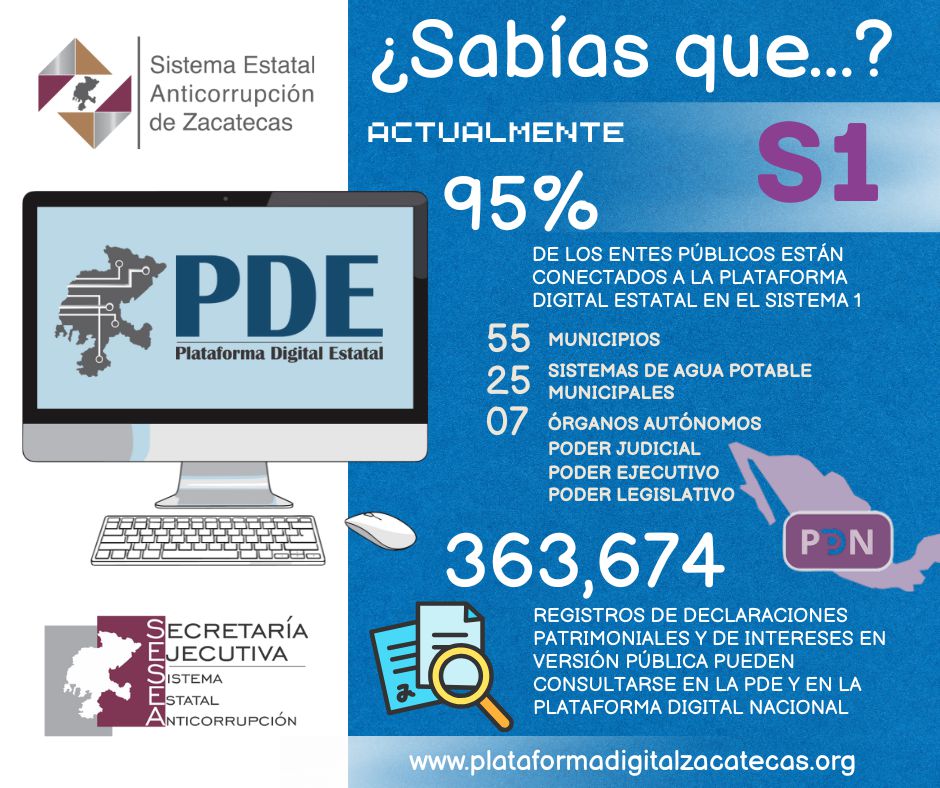 Zacatecas es uno de los estados con mayor porcentaje de entes conectados al S1 “Sistema de evolución patrimonial, de declaración de intereses y constancia de presentación de declaración fiscal” de la Plataforma Digital Estatal y Nacional