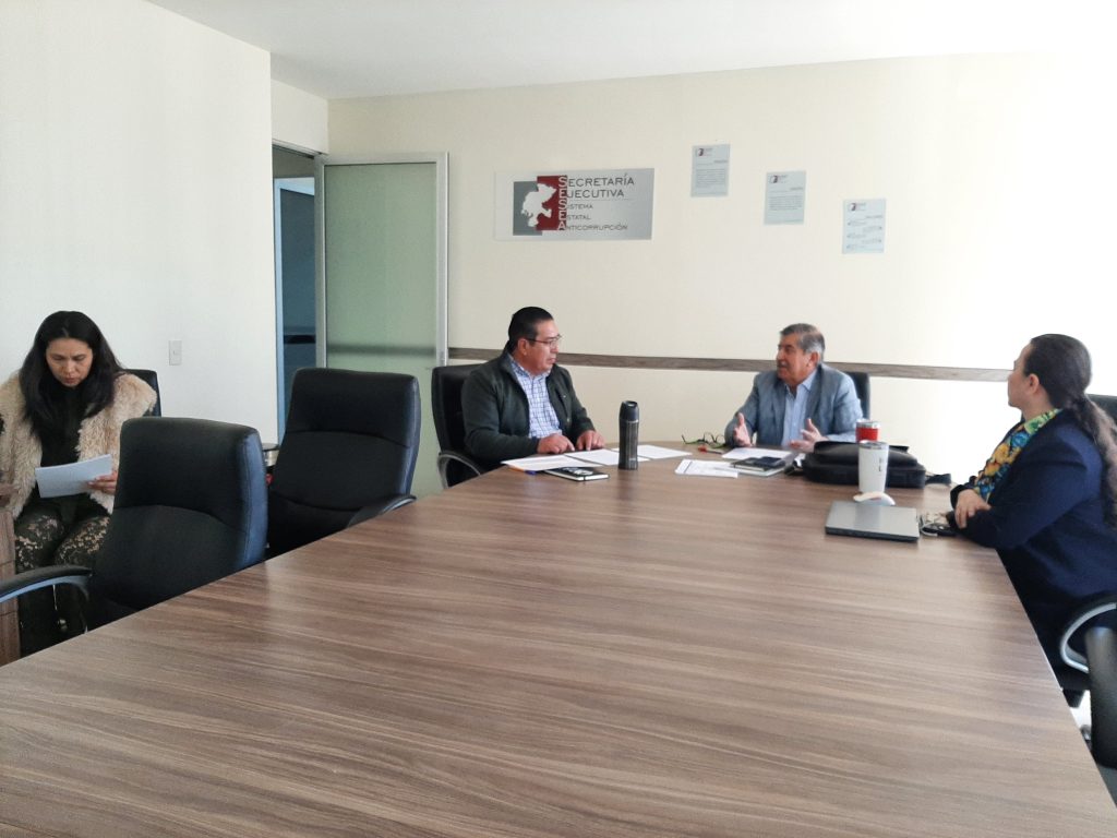 Este día se lleva a cabo una reunión con el Presidente del Sistema Estatal Anticorrupción de Zacatecas y Directivos de la Secretaría Ejecutiva para tratar los temas de la próxima reunión con Enlaces del Comité Coordinador.